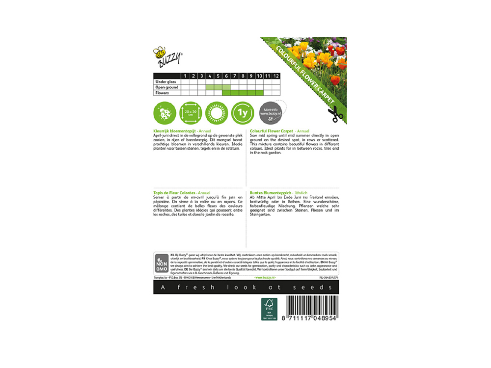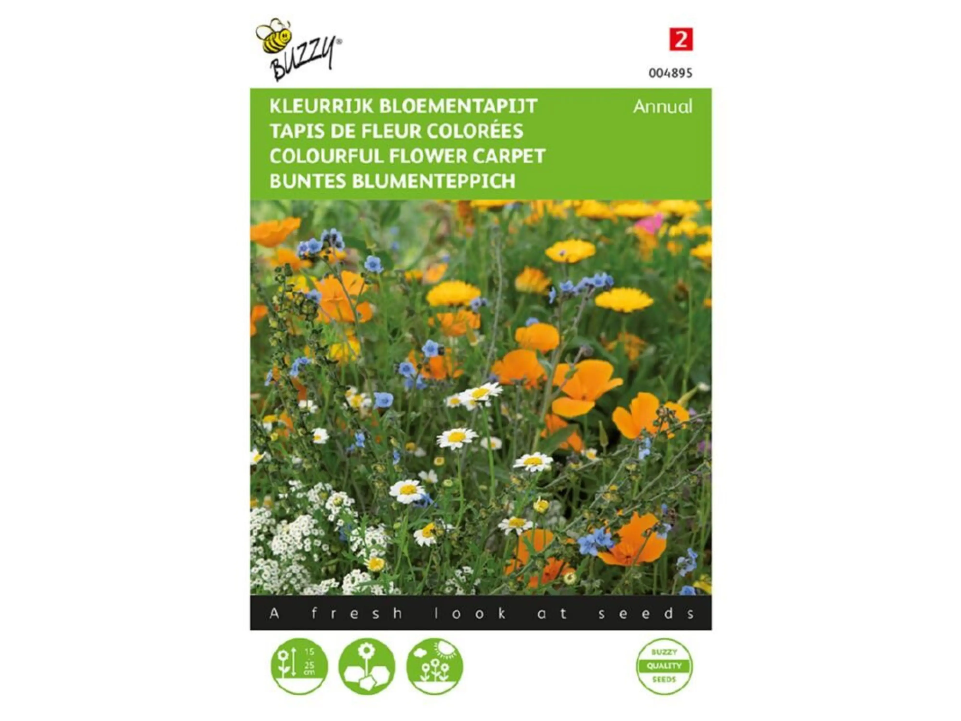 Farbenfroher Blumenteppich Annual ist eine Mischung aus schönen Blumen in verschiedenen Farben. Eine ideale Mischung zwischen Steinen, Fliesen und im Steingarten. Die Wachstumshöhe variiert zwischen 10 und 30 cm.