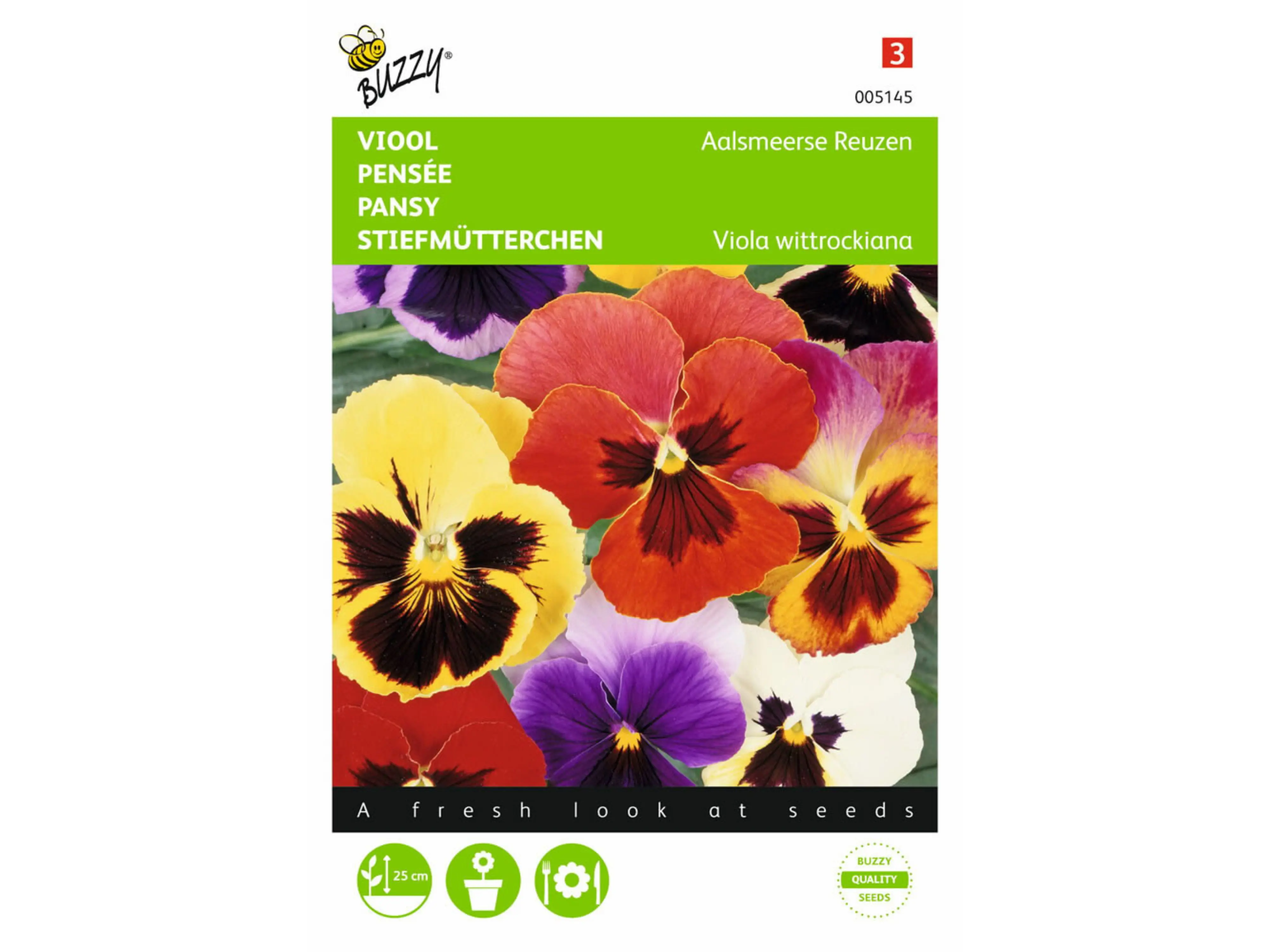 Diese Mischung aus großblütigen Stiefmütterchen der Gruppe der 'Niederländischen Riesen' kann sowohl jährlich als auch alle zwei Jahre angebaut werden. Viola Aalsmeerse Reuzen eignet sich perfekt für Beetpflanzungen, Beete, Beete und Blumentöpfe.