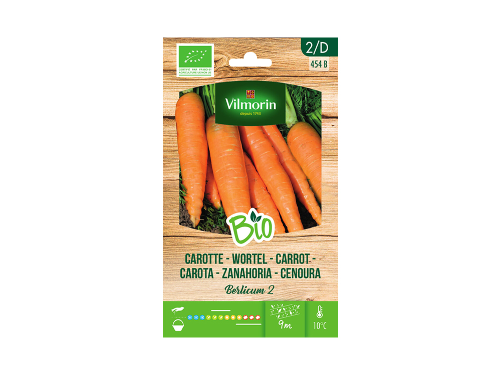 Bestellen Sie Bio-Samen bei Vilmorin und züchten Sie Ihre eigenen Karotten Berlicum 2. Eine Sorte, die ideal für die Herbst- und Winterernte ist. Um den Anbau vor schädlichen Insekten zu schützen, ist es am besten, Zwiebeln, Schalotten oder Lauch in der Nähe zu pflanzen.