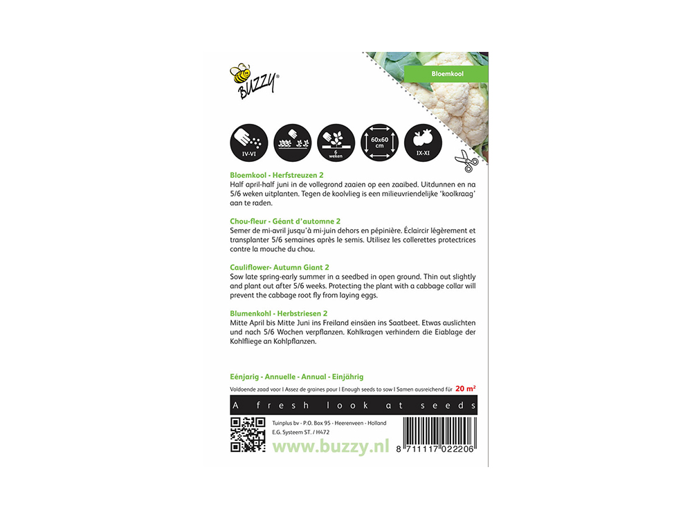 Die Blumenkohlsorte Autumn Giants 2 produziert große, wunderschöne weiße Blumenkohl mit ausgezeichnetem Geschmack. Die Pflanzen wachsen groß und entwickeln viele Blätter.