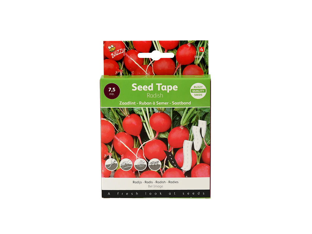 Möchten Sie Radieschen einfach und ordentlich aussäen? Dieses 7,5 Meter lange Samenband ist bereits mit Radieschen ausgesät und sofort bereit für den Einsatz in Ihrem Gemüsegarten. Ideal für alle, die effizient und mühelos aussäen möchten! Gebrauchsfertig und leicht zu schneiden.