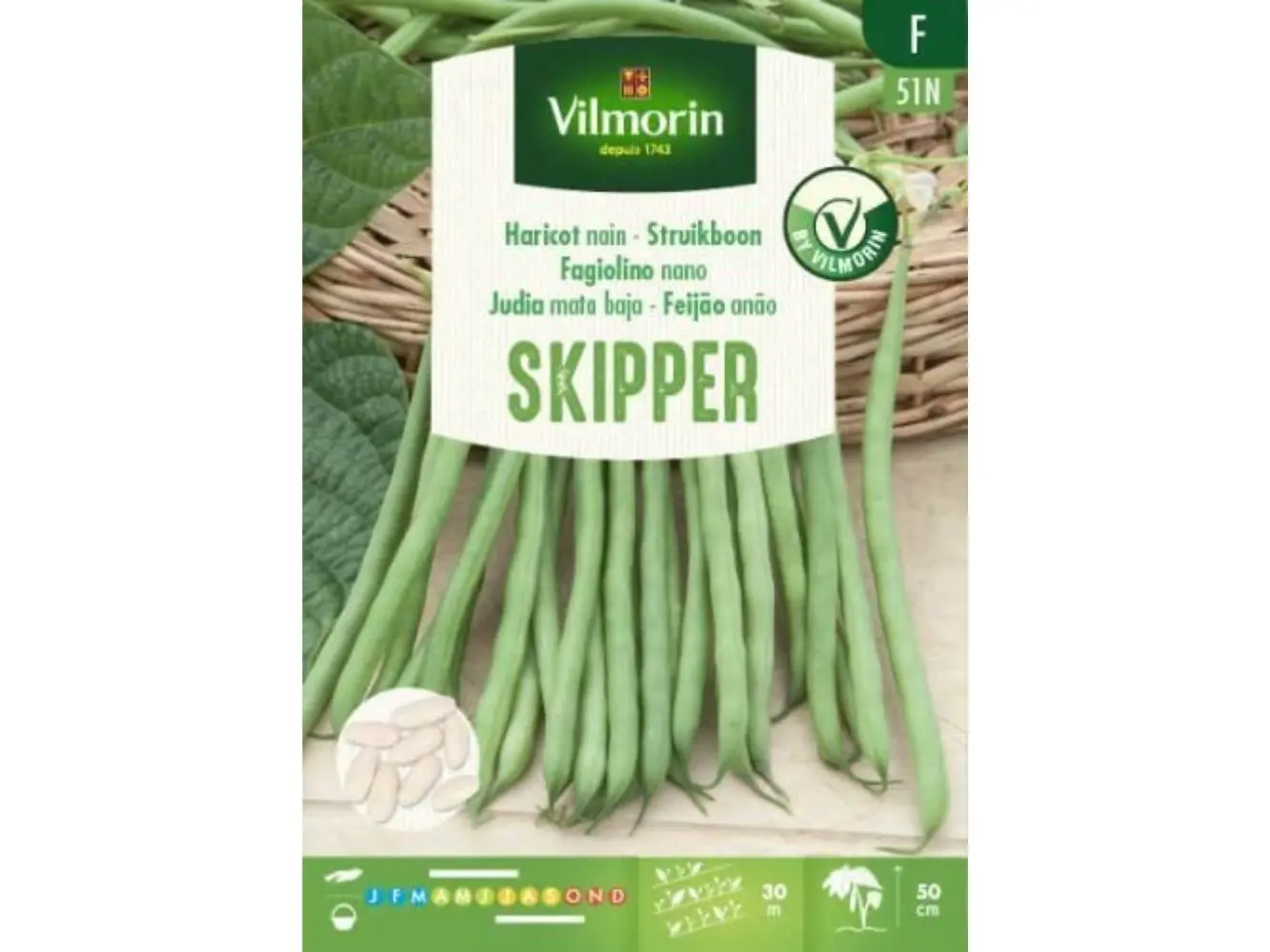 Bush Bean Skipper ist eine äußerst geeignete Sorte zum Konservieren und Tiefkühlen. Skiper hat eine Gruppenproduktion von etwa 12/13 cm Kapseln.