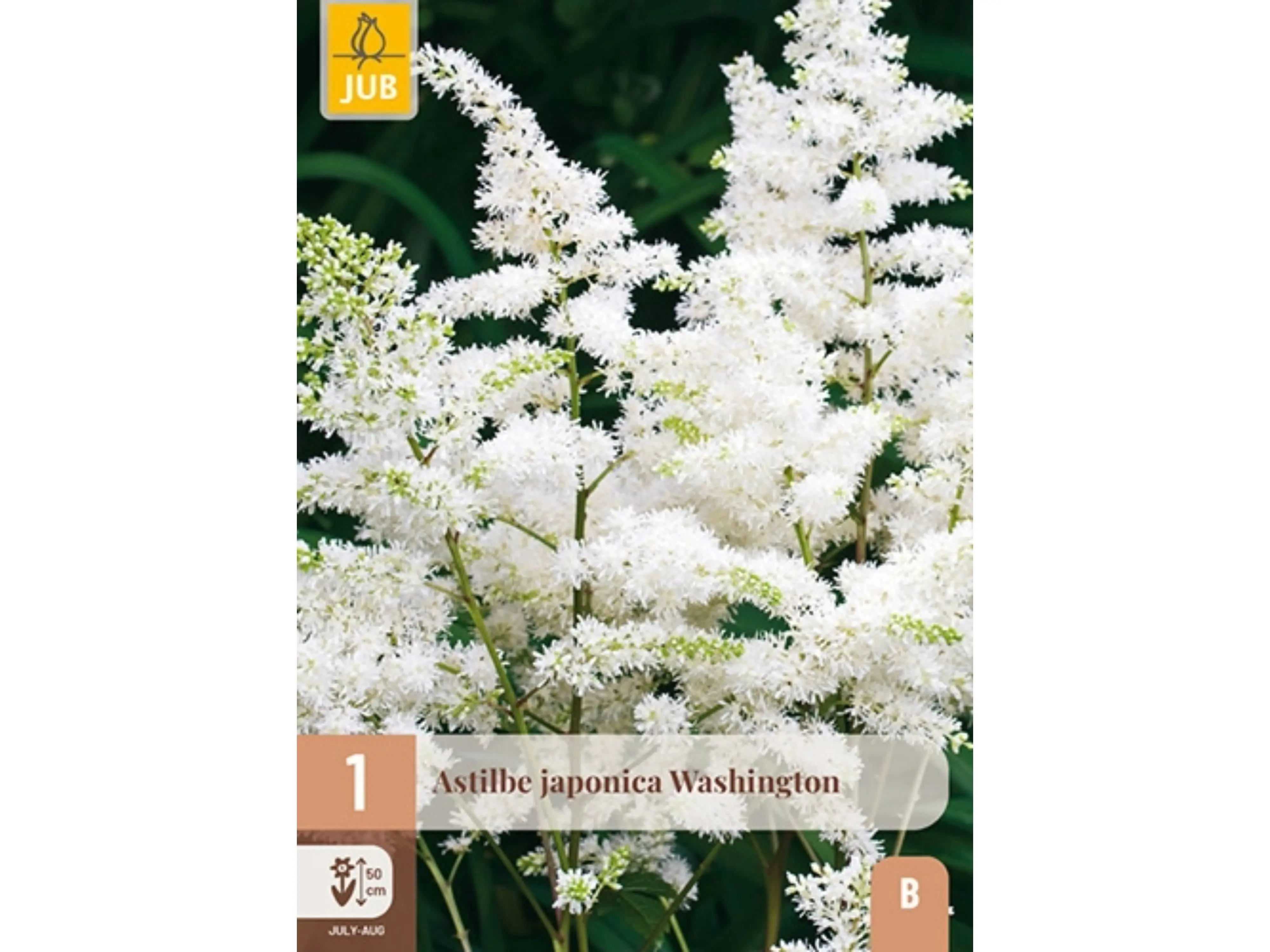 Der Astilbe 'Washington' ist eine weiße, sommerblühende Staude , die eine Höhe von 30–40 cm erreicht. Diese anmutige Pflanze sieht im Beet wunderschön aus, sieht aber auch im Topf gut aus.