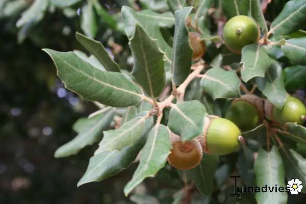 Les fruits sont des glands vert clair, certains sont gros, émoussés, tandis que d’autres sont petits et ronds comme des billes.
