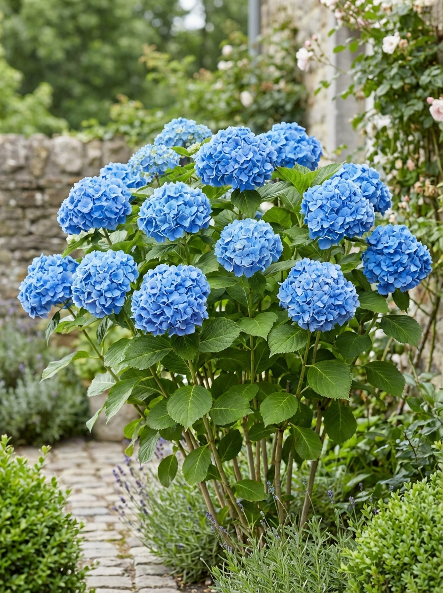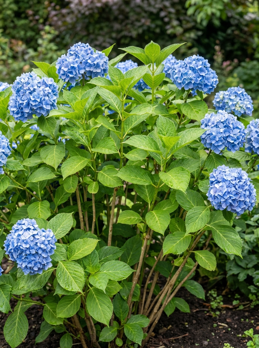 Hydrangea macrophylla 'Nikko Blue' est un hortensia bulbe compact, densément ramifié et à fleurs abondantes