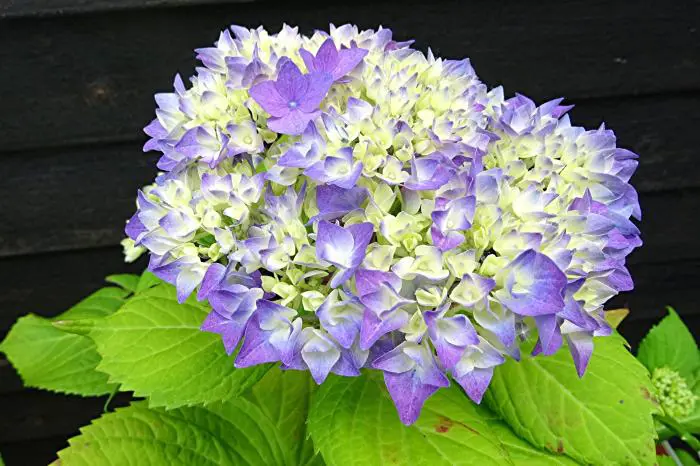 Hydrangea macrophylla FLAIR & FLAVOUR « Sweet Cupcake » fleurit d’un rose vif à un bleu vif selon le pH du sol.