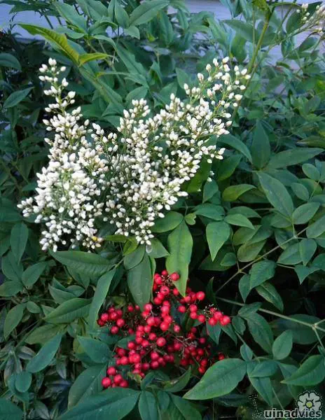 En été, le bambou céleste reçoit des fleurs blanches en forme de panaches, puis en hiver des baies rouges décoratives. Il est possible qu’une Nandina ne reçoive pas de fleurs et de baies. Il existe des espèces qui distinguent les spécimens mâles et femelles. Vous aurez besoin d’un des deux.