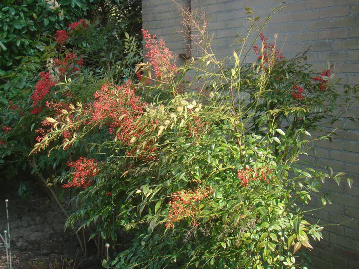 Nandina domestica est un arbuste originaire de Chine et du Japon. Le nom néerlandais est trompeur car ce n’est pas du bambou.