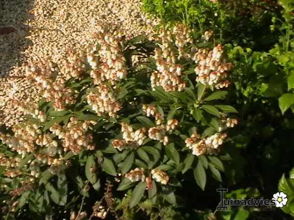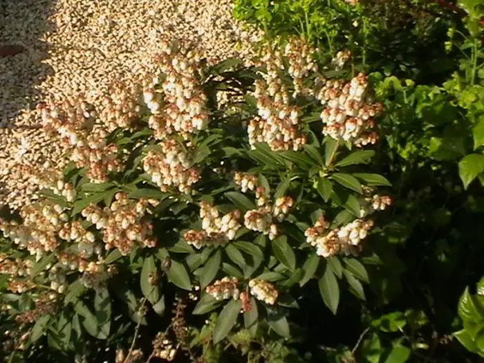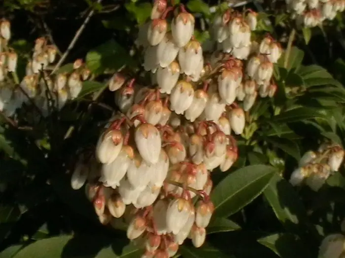 Pieris japonica 'Cupido' est un arbuste nain avec de magnifiques grappes suspendues de fleurs blanches crémeuses en forme d’urne, issues de bourgeons rouge vin au printemps, parfumant doucement le miel.