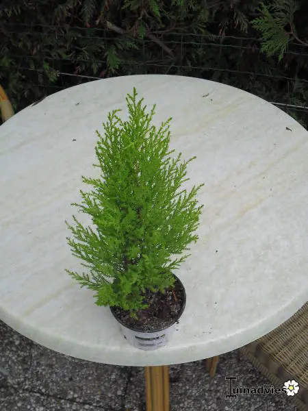 Cupressus macrocarpa 'Wilma' est un conifère nain à la forme pyramidale et d’un jaune-vert vif.