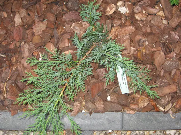 Juniperus sabina 'Rockery Gem' est un conifère bas à croissance large qui peut être utilisé comme couverture végétale.