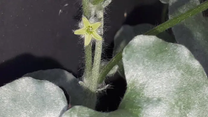 Les longues vrilles peuvent atteindre 50 à 150 cm de long avec de petites feuilles argentées en forme de cœur.