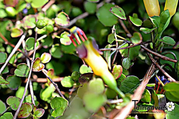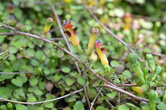 Fuchsia procumbens est une espèce botanique originaire de Nouvelle-Zélande, complètement différente du célèbre fuchsia.