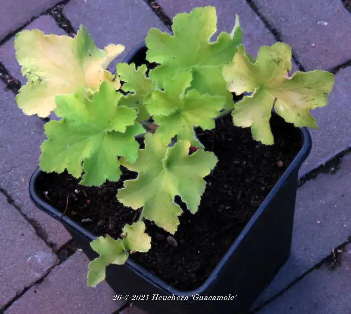 Les feuilles de Heuchera 'Guacamole' présentent des feuilles jaunâtre verdâtres saisissantes, ensoleillées.