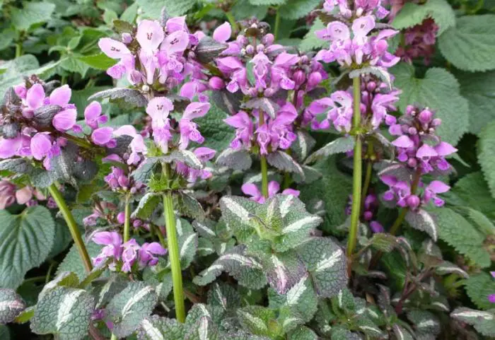 Le Lamium maculatum 'Chequers' est un bon couvre-sol avec de petites feuilles en forme de cœur.