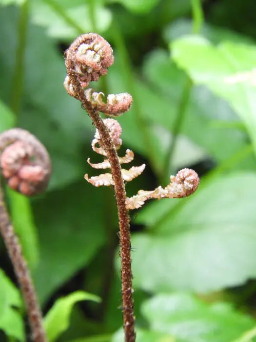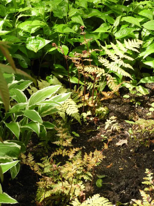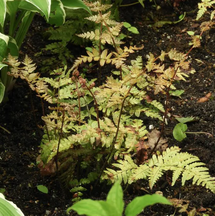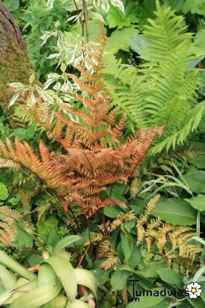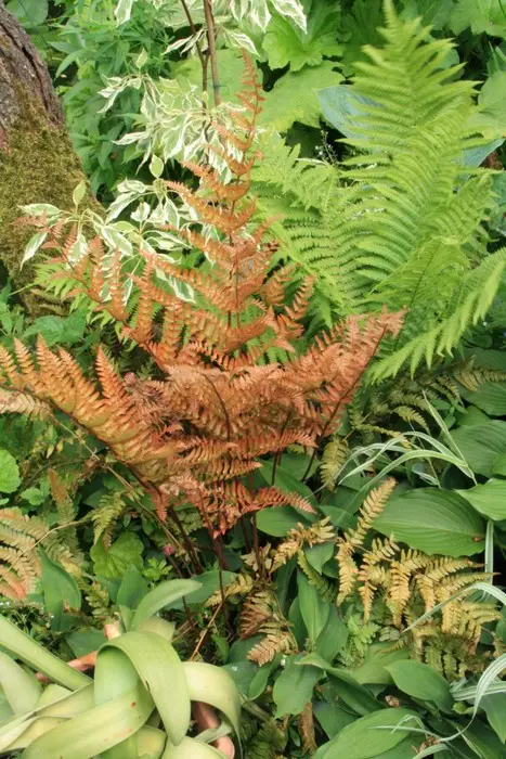 Une fougère plus petite de 50 cm de haut, avec des feuilles légèrement gofreuses. Ça devient rouge.