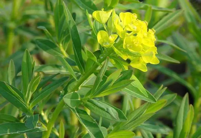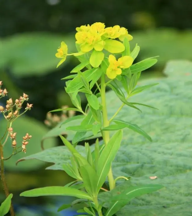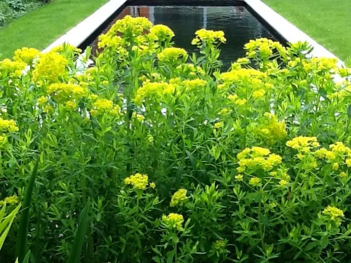 Euphorbia palustris 'Walenburg’s Glorie' est une grande vivace feuillue, avec un habit touffu et orné d’ombelles de fleurs jaune vif.