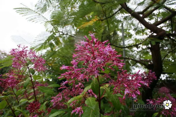 La fleur est un groupe de bourgeons rose-rouge qui fleurissent d’un teint violet-rose.