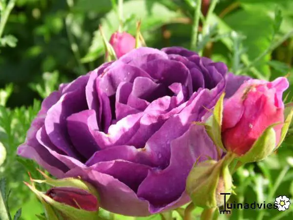 La fleur s’ouvre d’abord en rose-rouge puis devient violette-bleu.