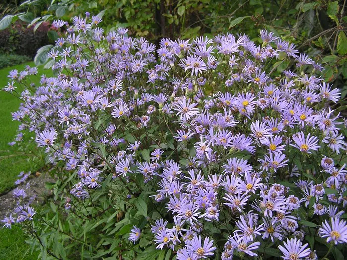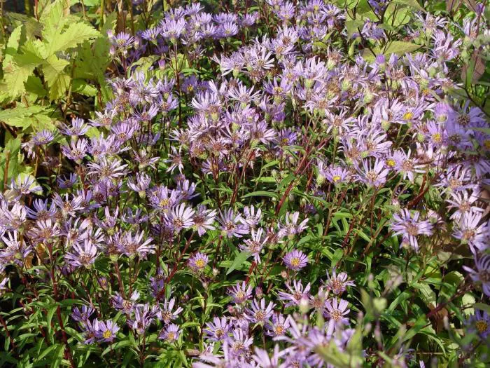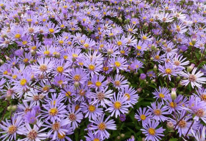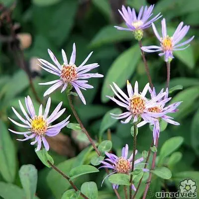 Aster radula est un aster sauvage, pas spectaculaire mais fleurit abondamment avec des fleurs bleu-violet au centre jaune vif.