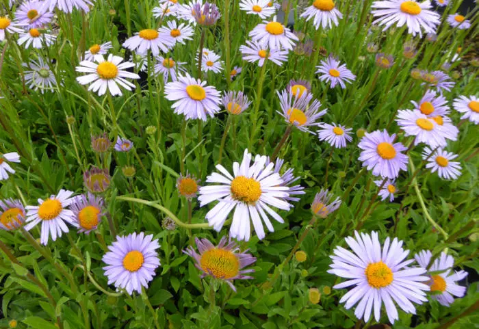 Aster tongolensis 'Wartburgstern' est un aster mat aux feuilles doucement velues, elliptiques, vert foncé.