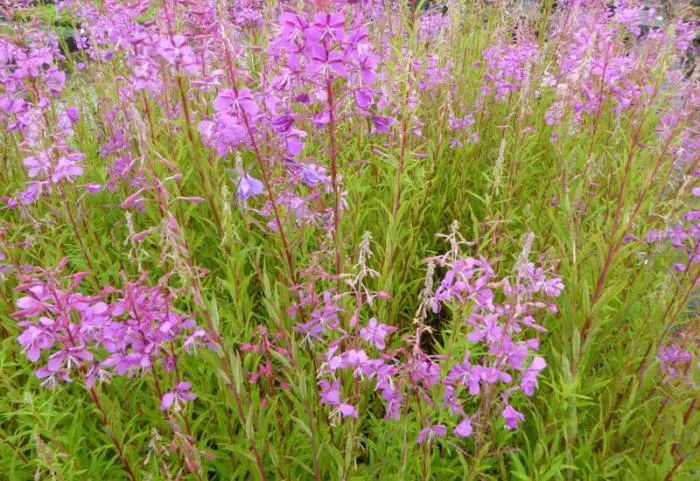 Epilobium angustifolium est une plante vivace aux tiges dressées. Fleurs avec des épines allant du violet-rose au violet-rouge.