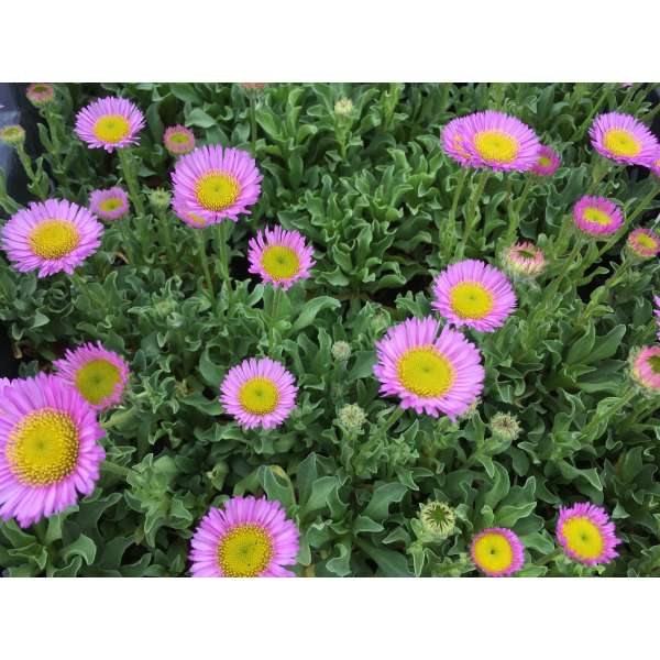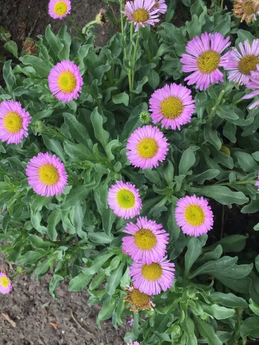 Les fleurs ont des feuilles fines de raie rose lavande autour d’un grand œil jaune.