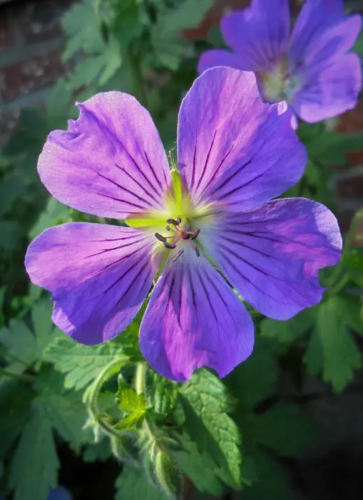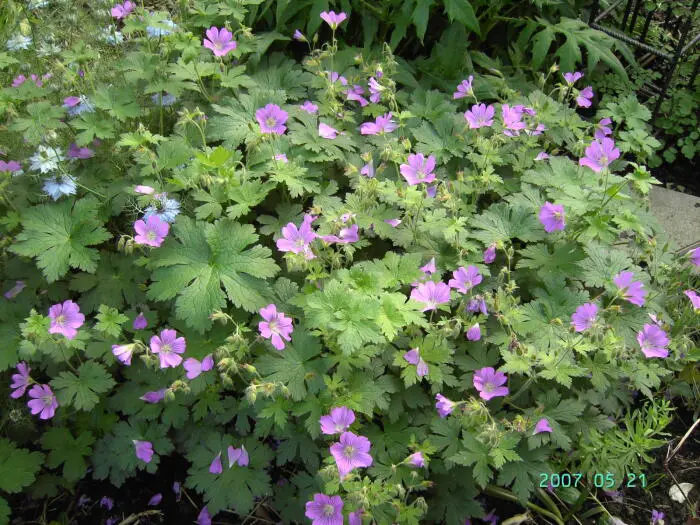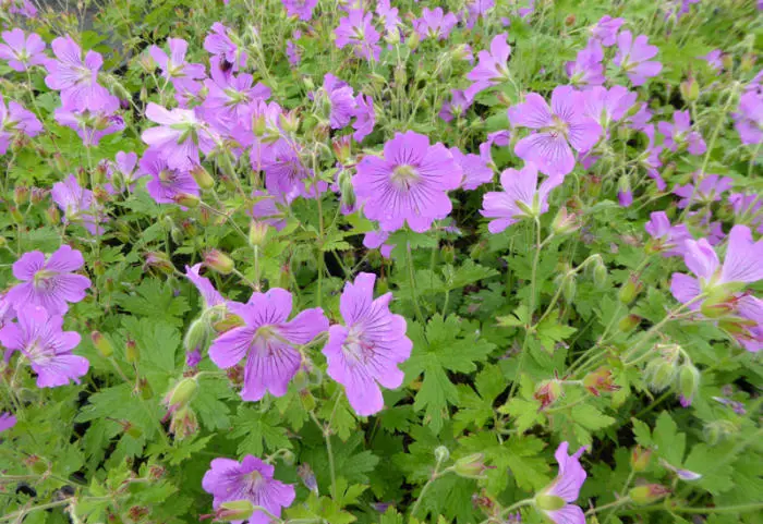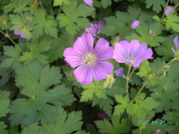 Geranium 'Sirak' provient d’un croisement entre G. gracilis et G. ibericum. C’est une vivace robuste, très robuste et très richement fleurie, avec des fleurs lilas-rosées à veines violettes.