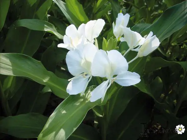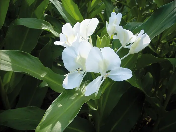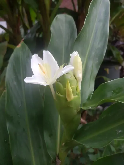 Elle fleurit avec des fleurs blanches merveilleusement parfumées, semblables à des papillons, un peu comme un glaïeul, toujours une fleur, puis une fleur à nouveau. Les feuilles ne sont pas très attrayantes, de grandes feuilles rappelant celles des feuilles de maïs, mais la fleur et son parfum intense compensent largement.