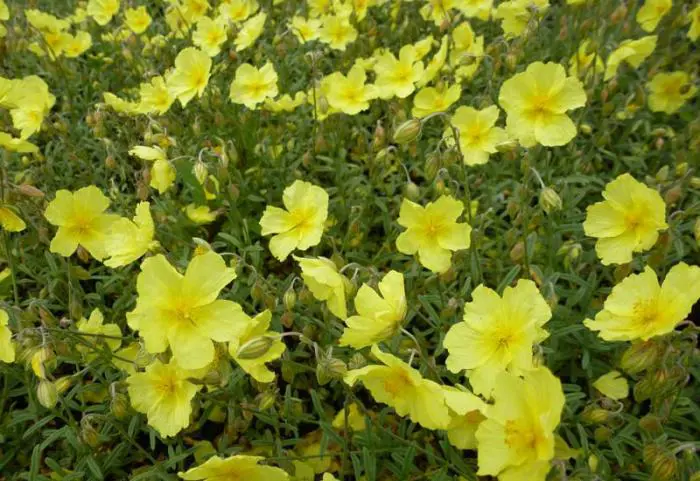 Helianthemum 'Wisley Primuve' est un semi-arbuste aux feuilles gris-vert et aux fleurs jaunes.