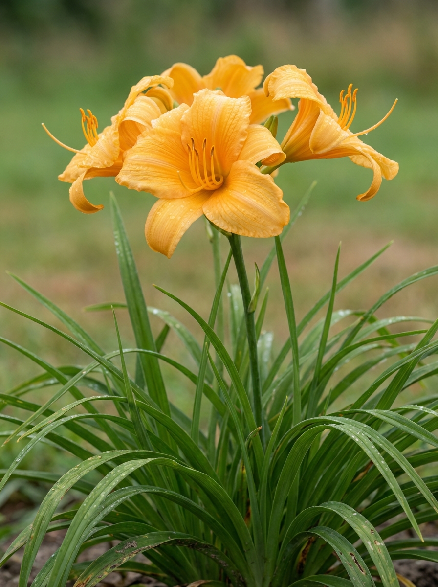 Hemerocallis 'Curls' fleurit d’un jaune abricot.La fleur est comestible.