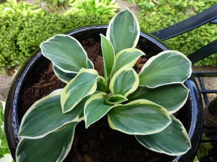 Un petit hosta à peine 20 cm avec de petites feuilles rondes bleu-vert. Les bords des feuilles sont blancs, devenant crème au printemps pour devenir complètement verts.