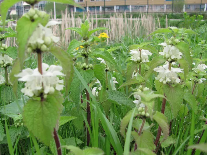 Lamium album est une plante formant des tapis, qui se propage au moyen de rhizomes avec des couleuses souterraines.