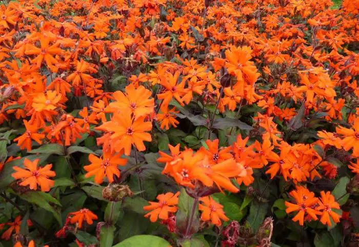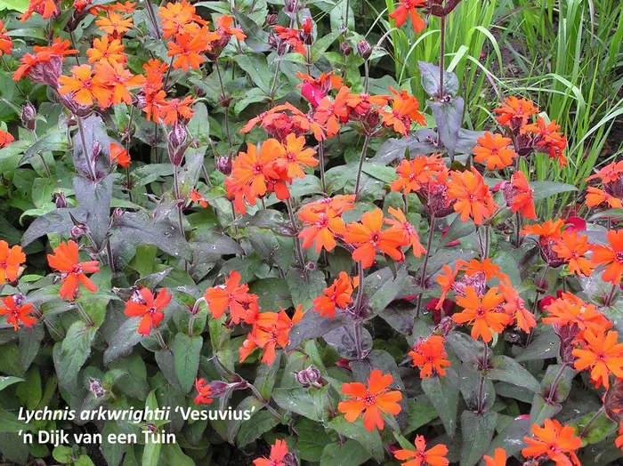 Lychnis x arkwrightii 'Vesuvius' est une vivace à vie courte.