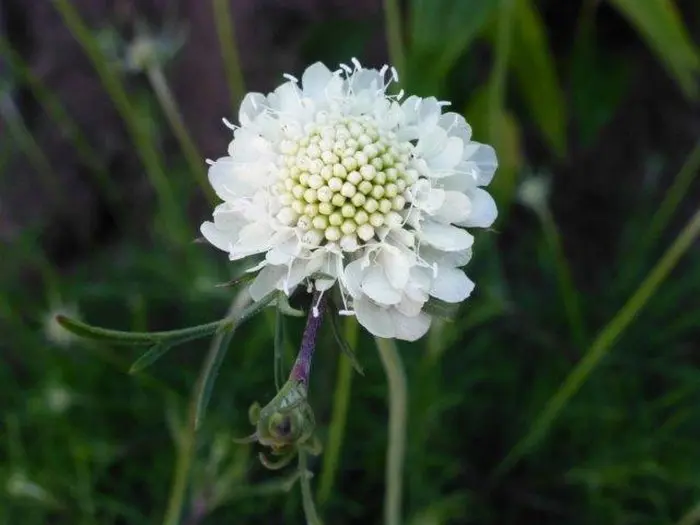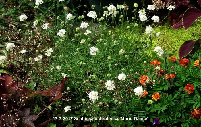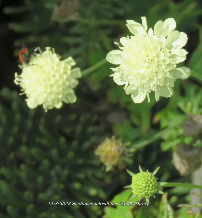 Scabiosa ochroleuca 'Moon Dance' fleurit avec de douces fleurs rondes jaunes.