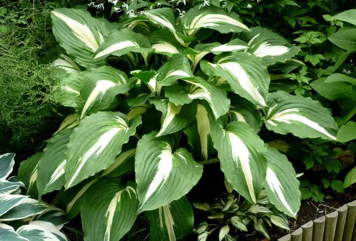 Le Hosta « Nuit avant Noël » forme de très belles feuilles vertes avec un centre blanc étroit.
