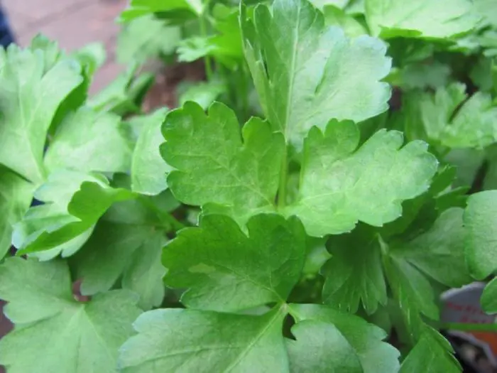 Ne devrait pas être introduite parce que qui ne connaît pas le persil... À la fois le plat qui a un goût beaucoup plus fort, un peu poivré, et le persil bouclé qui est agréable à utiliser pour décorer les plats.