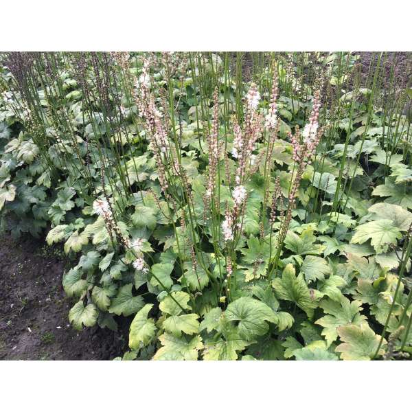 Actaea japonica 'Silver Dance' est une variété compacte avec une feuille argentée brillante à lobes magnifiques au printemps et une fleur éclatante en septembre. La floraison est très riche et aérienne, avec de fines pointes couvertes d’une abondance de fleurs blanches crémeuses et parfumées issues des bourgeons roses.