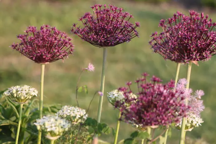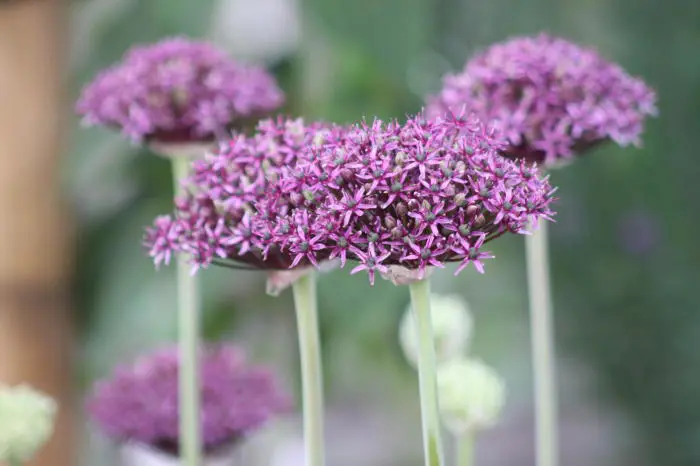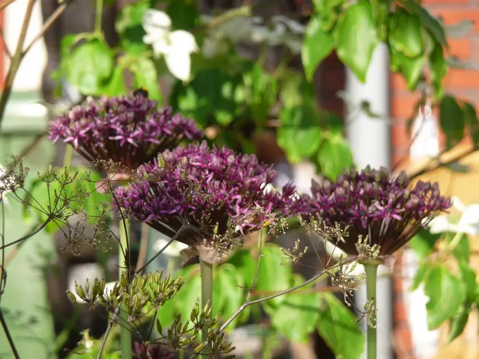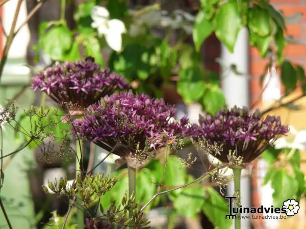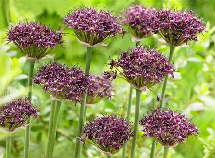 Allium atropurpureum fleurit avec de grandes fleurs sphériques très foncées, d’un rouge vin, sur des tiges hautes et robustes. Après la floraison, les magnifiques gousses de graines suivent et restent attrayantes longtemps.