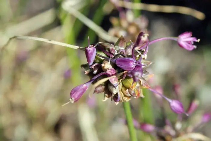 Allium carinatum subsp. pulchellum est une plante bulbeuse aux feuilles vertes linéaires.
