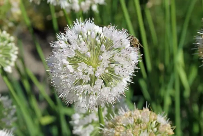 Fleurs sur des tiges dressées avec des ombelles denses et bombées de fleurs blanches, violette-rouges ou pourpres.