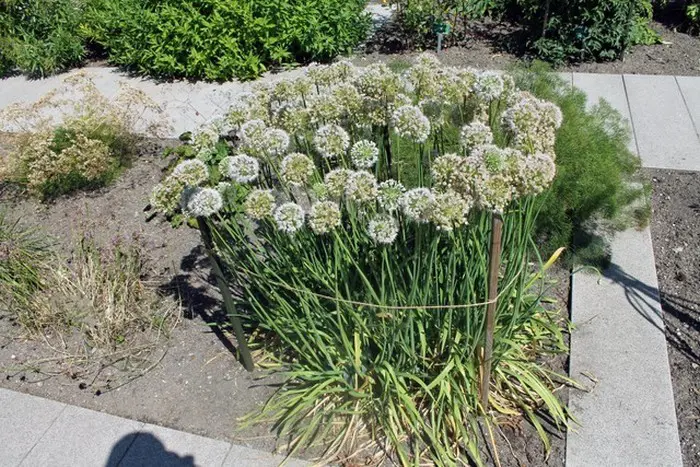 Allium carolinianum est une plante compacte et bulbeuse avec des feuilles étroites en forme de ceinture, gris-vert.