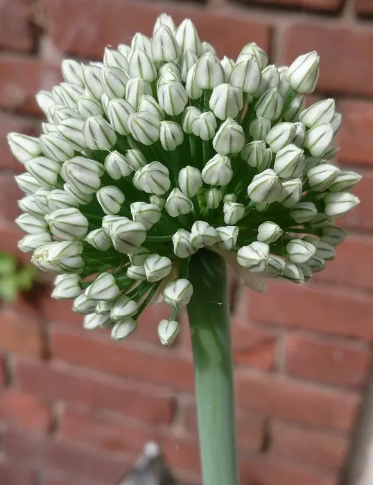 Le bulbe de l’oignon est comestible. Si vous n’y prenez pas garde, ce bulbe utilise ses réserves pour créer une tige florale avec une inflorescence sphérique blanche.