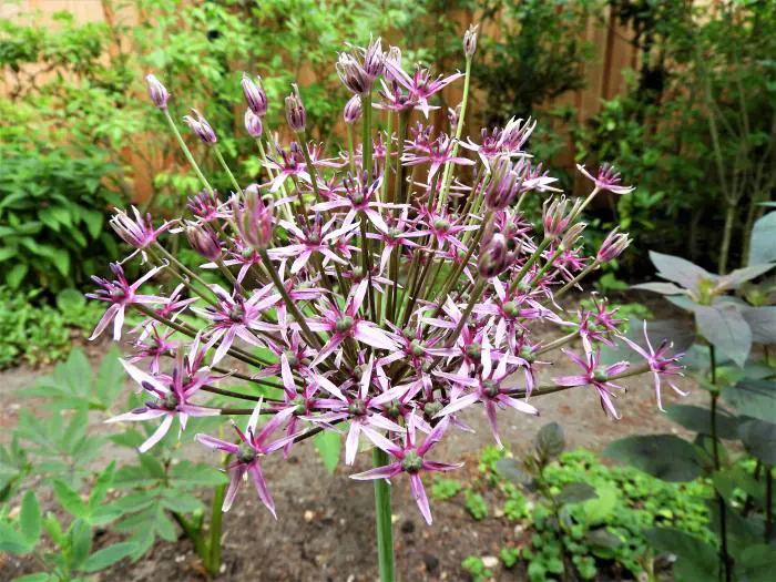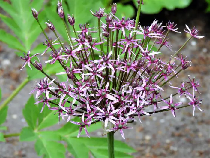 Cet ail ornemental hybride possède une grande arachnide et une ombelle violette-pourpre. La couleur est encore plus intense que chez A.schubertii.