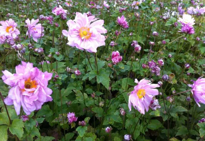 Anemone hybrida 'Mont Rose' fleurit avec des fleurs doubles et plus grandes.