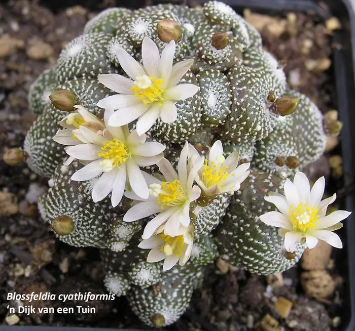 Blossfeldia cyathiformis est une sous-espèce de Blossfeldia liliputan, qui est le plus petit cactus au monde.