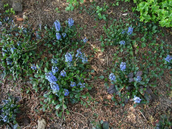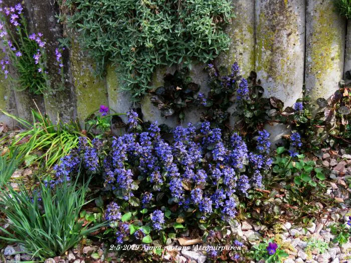 Ajuga reptans atropurpurea est une vivace rampante avec de courtes pointes composée de petites fleurs bleu foncé