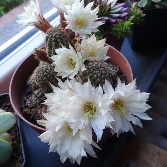 L’hybride Chamaelobivia, Chamaecereus X Lobivia, les deux sexes ont été reclassés comme Echinopsis.