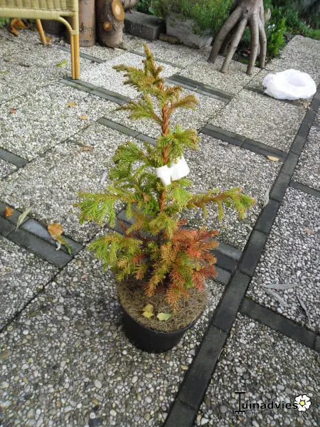 Les brindilles courtes sont densément couvertes de petites aiguilles bleu-vert/vert foncé.