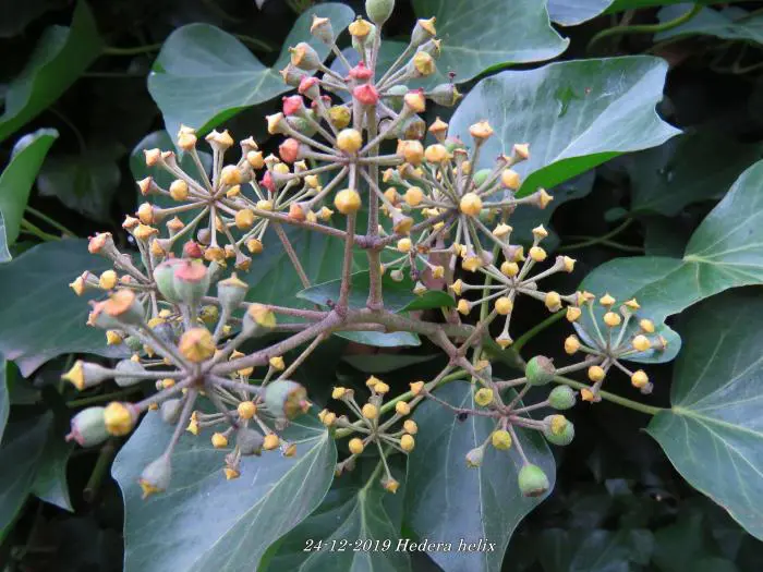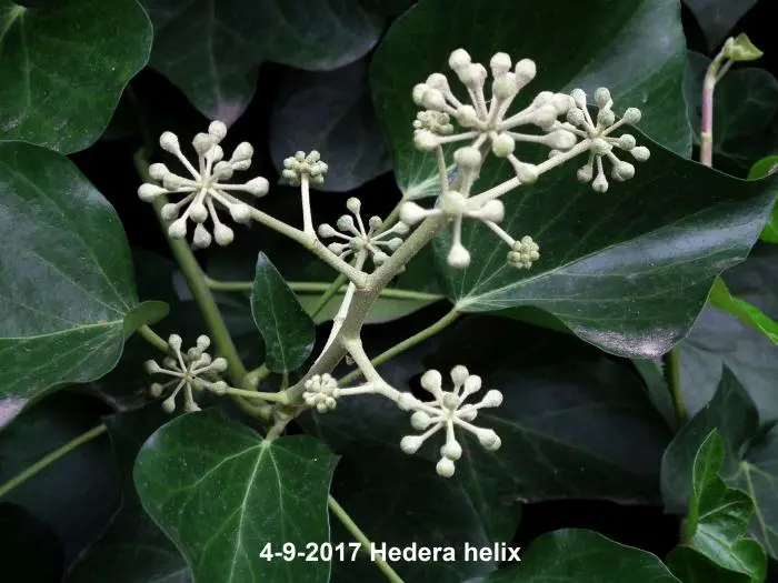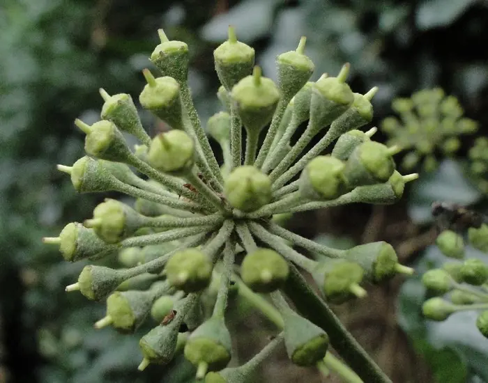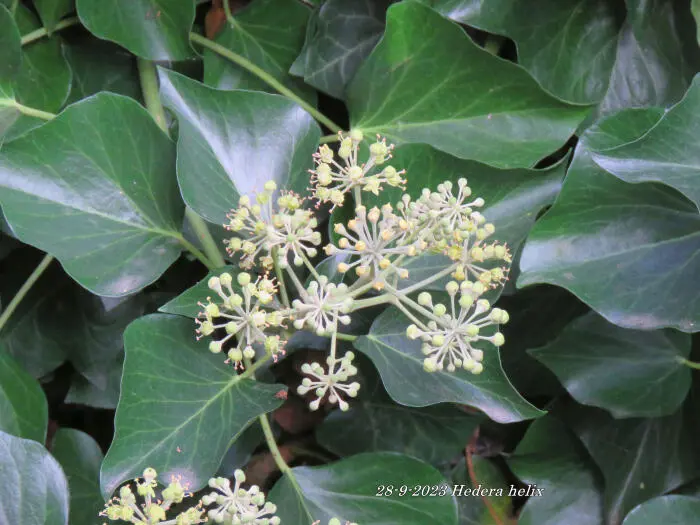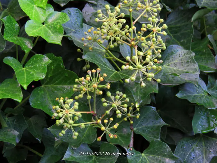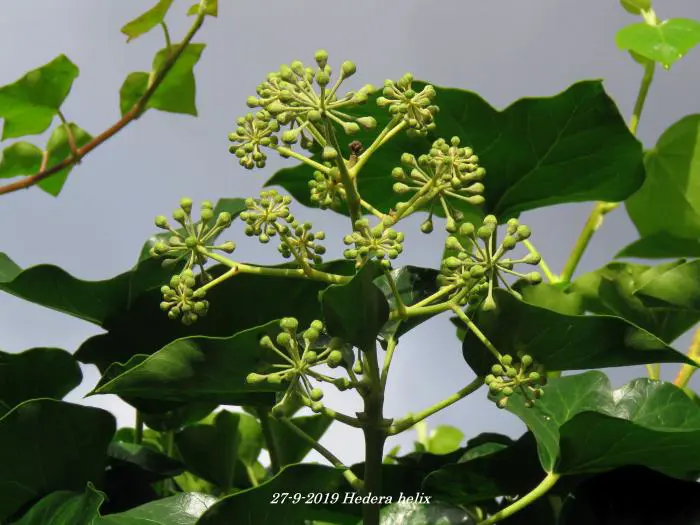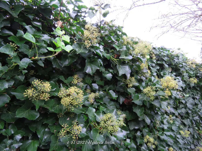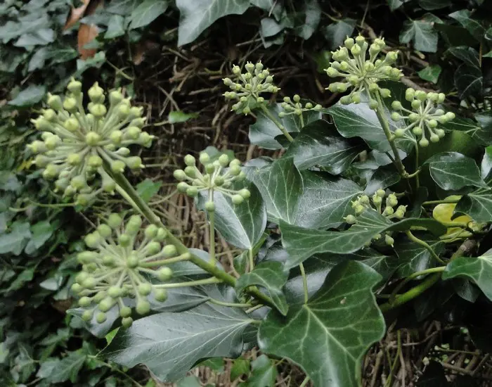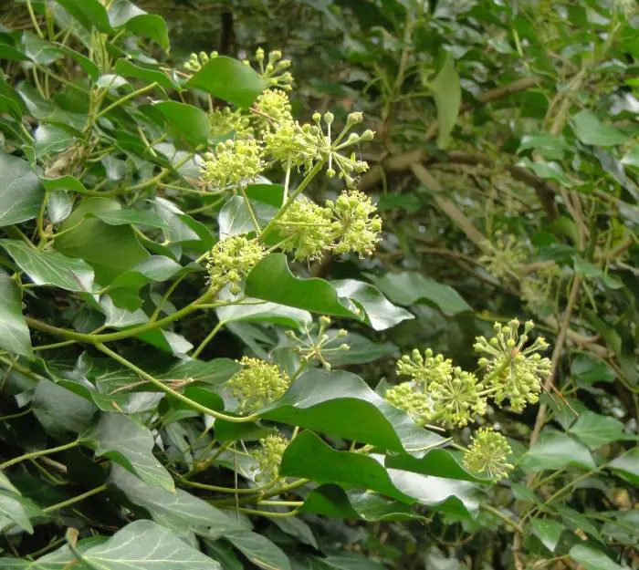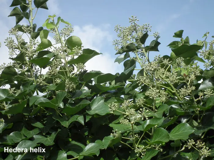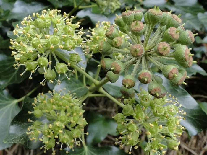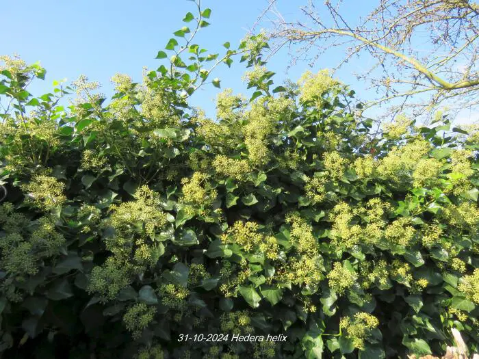 En automne, les fleurs verd-jaune fleurissent et sont intensément visitées par toutes sortes d’abeilles.